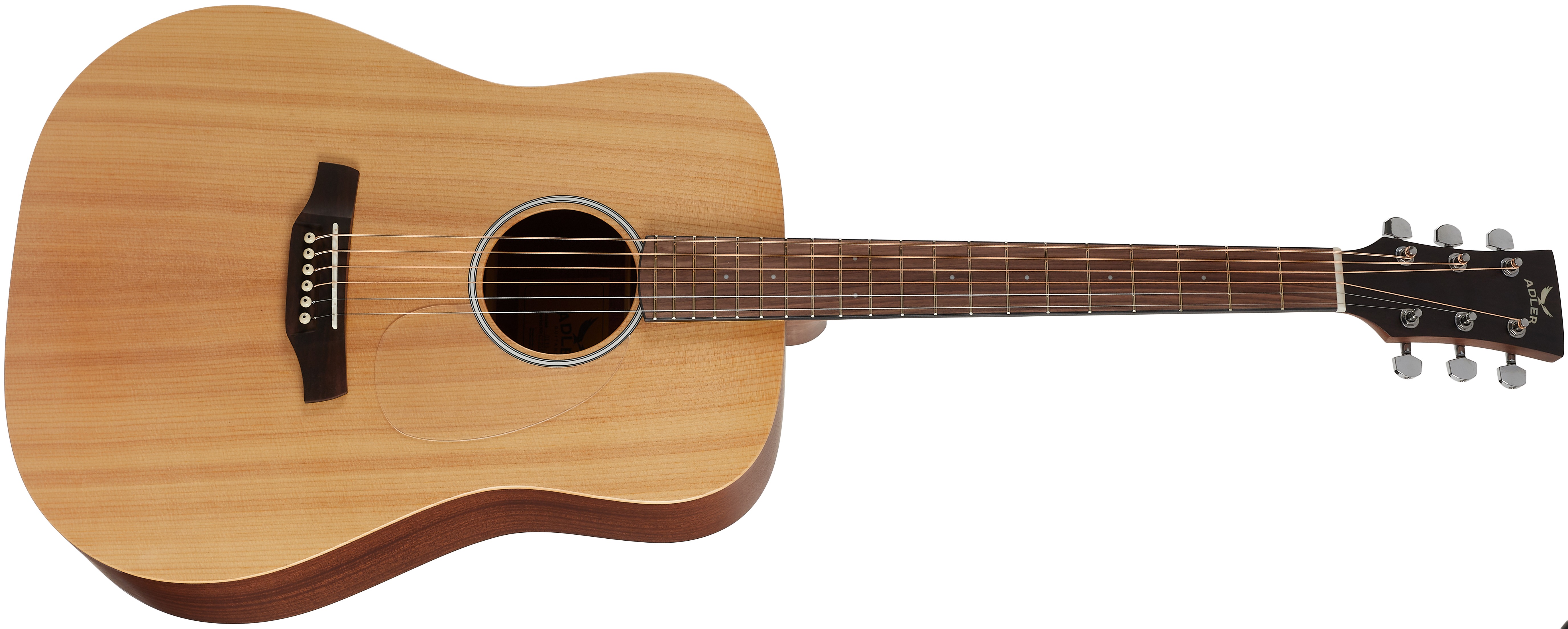 Elektroakustická kytara Elektroakustická kytara DE10-SM značky Adler Guitars je nástroj s velkým rezonantním tělem typu Dreadnought. Přední deska kytary je zhotovena z masivu smrku Sitka, zadní deska a luby jsou vyrobeny z vrstveného mahagonu. K mahagonovému krku je přilepen hmatník ze dřeva pau ferro. Orientaci na hmatníku usnadňují poziční tečky z imitace perleti. Možnost ozvučení nabízí elektronika Fishman Presys II s ov