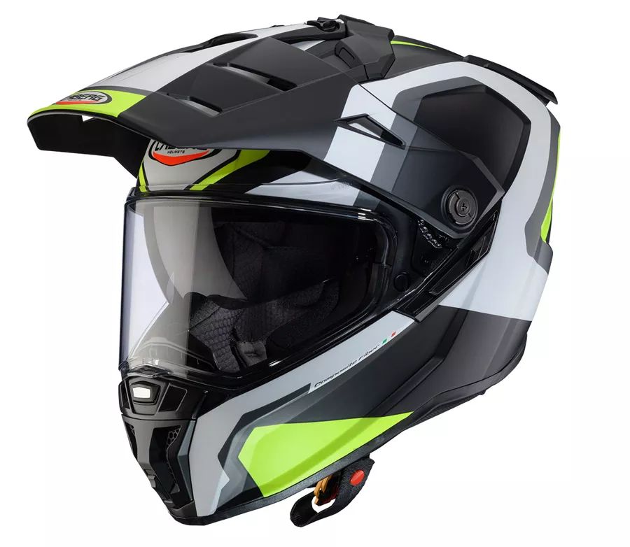 loading=\"lazy\"\r \r \r Caberg TANAMI je univerzální on-road/off-road přilba s odolnou skořepinou ze sklolaminátu, navržená pro maximální komfort, ventilaci a bezpečnost během cestování i jízdy v terénu.\r \r Hlavní přednosti:\r - Skořepina ze sklolaminátu – vysoká odolnost při nízké hmotnosti\r - Použití s kšiltem nebo bez něj – přizpůsobíte si přilbu podle stylu jízdy\r - Možnost nasazení MX brýlí (s vyklopeným nebo odejmutým hledím)\r - Připraveno pro hydratační systém vedený bradovým deflektorem\r - Vhodná pro každodenní cestování i náročné výpravy v terénu\r \r Ventilace a pohodlí:\r - Magnetické kryty ventilací – snadno ovladatelné i v rukavicích\r - Velký horní větrací otvor se dvěma nastavitelnými vstupy\r - Odnímatelné zadní kryty pro lepší proudění vzduchu\r - Větrací otvor na bradě s odnímatelným krytem pro přesné nastavení proudění\r \r Výbava a funkce:\r - Čiré antifog hledí + Pinlock Max Vision 70 součástí balení\r - Středový zámek hledí a možnost mikroventilace proti mlžení\r - Integrovaná sluneční clona (DVT) – snadné ovládání i v rukavicích\r - Odnímatelný a pratelný interiér z hypoalergenních materiálů\r - Ergonomické lícnice – vhodné i pro brýle\r - Zapínání pomocí hliníkového DD kroužku\r \r Chytrá bezpečnost – Caberg SOS Medical ID\r Přilba je vybavena technologií Caberg SOS Medical ID – umožňuje uložit zdravotní a kontaktní údaje přímo do helmy pomocí NFC čipu. Záchranáři tak mohou v případě nehody ihned získat potřebné informace – bez aplikace, jednoduše pomocí telefonu.\r \r Kompatibilita:\r Připraveno pro montáž interkomu Caberg Pro Speak Evo – komunikace, hudba i GPS až do vzdálenosti 200 m.\r \r loading=\"lazy\"\r \r \r loading=\"lazy\"