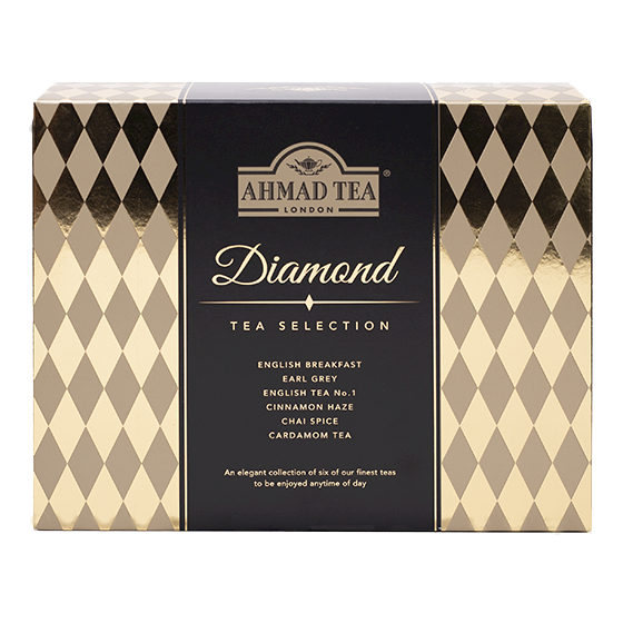 Diamond Selection | 60 alu sáčků Kolekce černých a černých ochucených čajů Diamond Tea Selection je elegantní kolekce s diamantovým vzorem, balení obsahuje 6 druhů našich špičkových čajů, které si můžete užít kdykoliv během dne. Konkrétně se můžete těšit na těchto 6 druhů: English BreakfastKlasický výběr kvalitních čajových lístků, které jsou charakteristické pro tradiční anglický šálek čaje. Přestože se tento čaj obvykle pije ráno, nic Vám nebrání si šálek tohoto lahodného čaje užít kdykoliv během dne - s mlékem či bez. Chai SpiceSilný a uklidňující černý čaj s nádechem zázvoru a jemně kořeněnými tóny skořice, tento čaj Vás zaručeně zahřeje a budete se cítit zkrátka senzačně. Cinnamon HazeKombinace konejšivých a hřejivých tónů skořice společně s těmi nejkvalitnějšími lístky černého čaje zaručuje dokonale relaxační zážitek. Šálek tohoto čaje je perfektní pro vzácné chvilky s rodinou či přáteli. Earl GreyJemná kombinace těch nejkvalitnějších čajových lístků s elegantním aroma bergamotu. Earl Grey je velmi oblíbený anglický čaj, který se obvykle pije bez mléka. English Tea No. 1Černý čaj neobyčejné kvality s jemným nádechem bergamotu. Dokonalá rovnováha mezi aroma, barvou a jeho sílou z něj činí skvělý čaj pro každou příležitost. Cardamom TeaSměs těch nejkvalitnějších čajových lístků černého čaje ze Srí Lanky a ostatních zemí s příchutí kardamómu. Tento čaj se pyšní excelentní barvou, chutí i vůní.