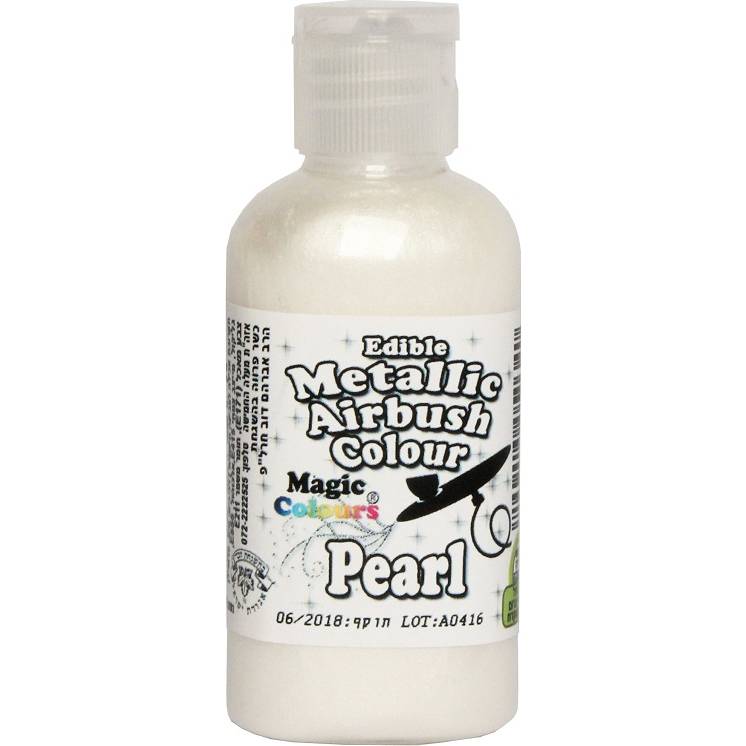 Jedlá barva pro airbrush Pearl White je vhodná i k aplikaci pomocí štětců. Balení 55 ml.