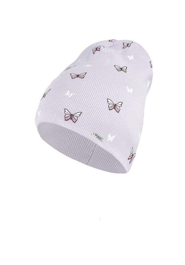 Dívčí jarní klobouk - jemná žebrovaná bavlna - zdobená motýlím vzorem - lemování s malým logem společnosti Složení: 95 % bavlna, 5 % elastan