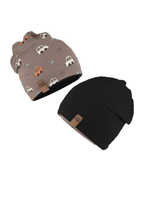 Oboustranná chlapecká čepice - měkká bavlna - barevný potisk autíček - ozdobná nášivka Složení: 95 % bavlna, 5 % elastan