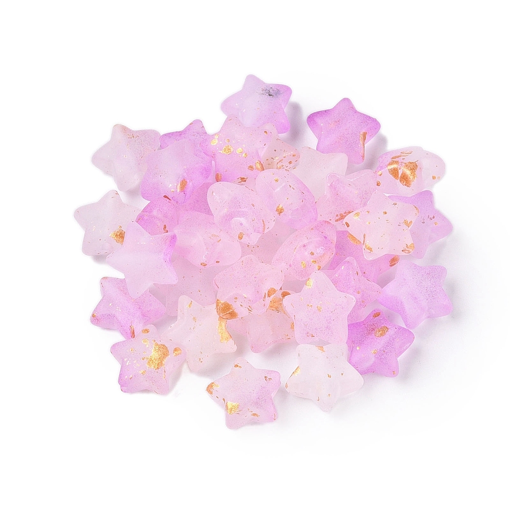Akrylové korálky ve tvaru hvězdy v tajemném fialovém odstínu se zlatavým zdobením působí, jako by byly posypané prachem z noční oblohy. Jejich matný povrch s jemným ledovým efektem jim dodává jedinečný, téměř pohádkový vzhled. Každý korálek má rozměry 9 × 10 mm, hloubku 5 mm a průvlek o velikosti přibližně 1,6 mm. Díky akrylovému materiálu jsou velmi lehké, stálobarevné a příjemně se s nimi pracuje, takže se hodí i pro větší projekty. Tyto hvězdičky se stanou krásným detailem při výrobě náramků, náhrdelníků, náušnic i talismanů s kouzelnou atmosférou hvězdné oblohy. Skvěle vyniknou také v kombinaci s dalšími akrylovými či skleněnými korálky. Korálky prodáváme po 10 kusech, takže si snadno zvolíte přesný počet podle svých kreativních plánů.