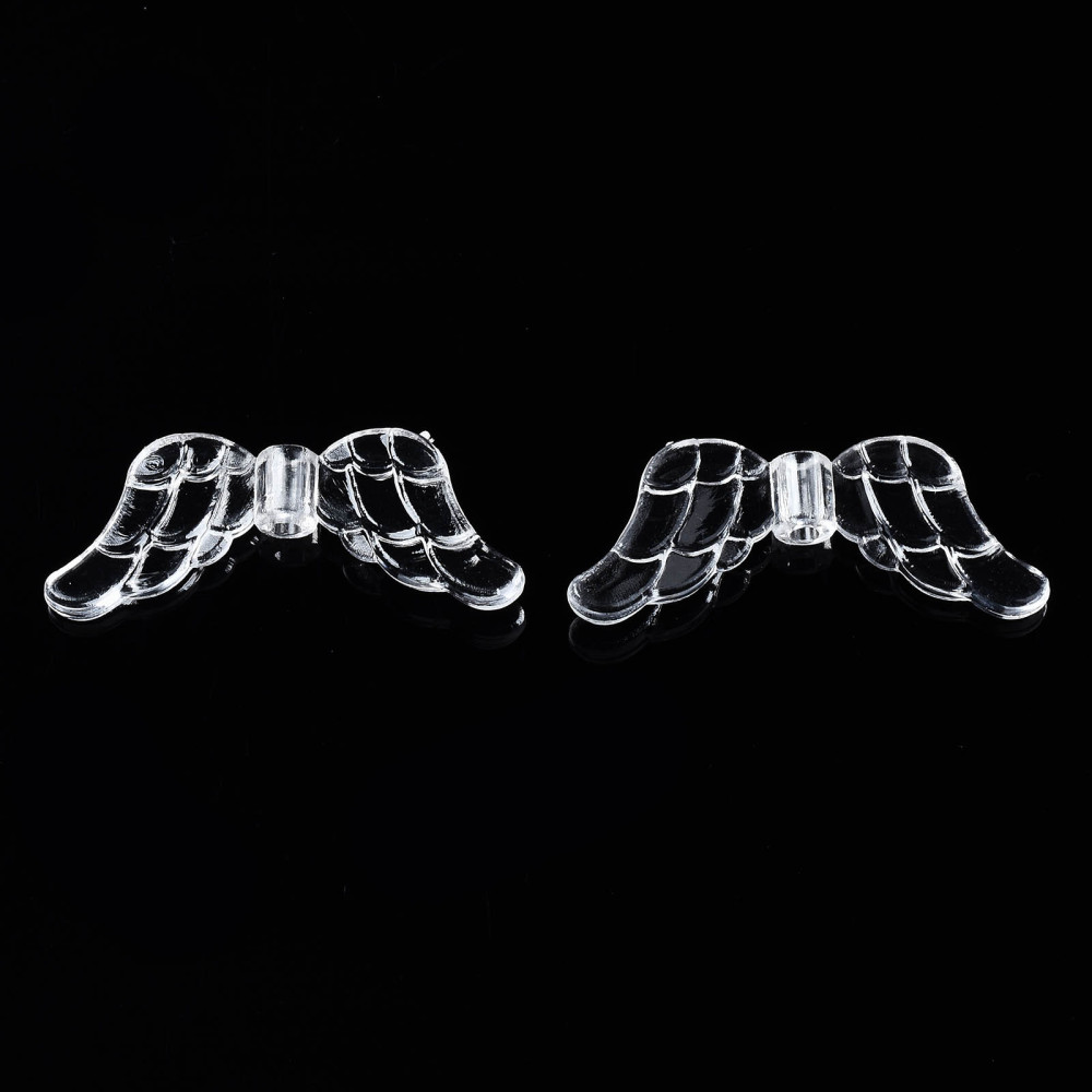 Transparentní akrylová křídla v čirém provedení působí lehce, jemně a velmi elegantně. Díky průhlednému materiálu krásně pracují se světlem a snadno se kombinují s minerály, sklem i kovovými komponenty. Korálek má rozměry přibližně 29 mm na délku, 12 mm na šířku a 3,5 mm na tloušťku. Průvlek o velikosti 1,8 mm umožňuje pohodlné navlékání na pruženku, silnější šňůrku nebo použití jako zavěšovacího prvku pomocí ketlovací jehly. Vyroben je z lehkého čirého akrylu, takže i přes větší rozměr nezatěžuje výsledný šperk. Křídla se skvěle hodí jako středový prvek náramku, dominantní prvek náhrdelníku nebo jako součást andělských a symbolických šperků. Díky své univerzálnosti se hodí jak do jemných minimalistických projektů, tak i do výraznějších kombinací s barevnými korálky. Korálky prodáváme po deseti kusech – uvedená cena je za 10 ks.