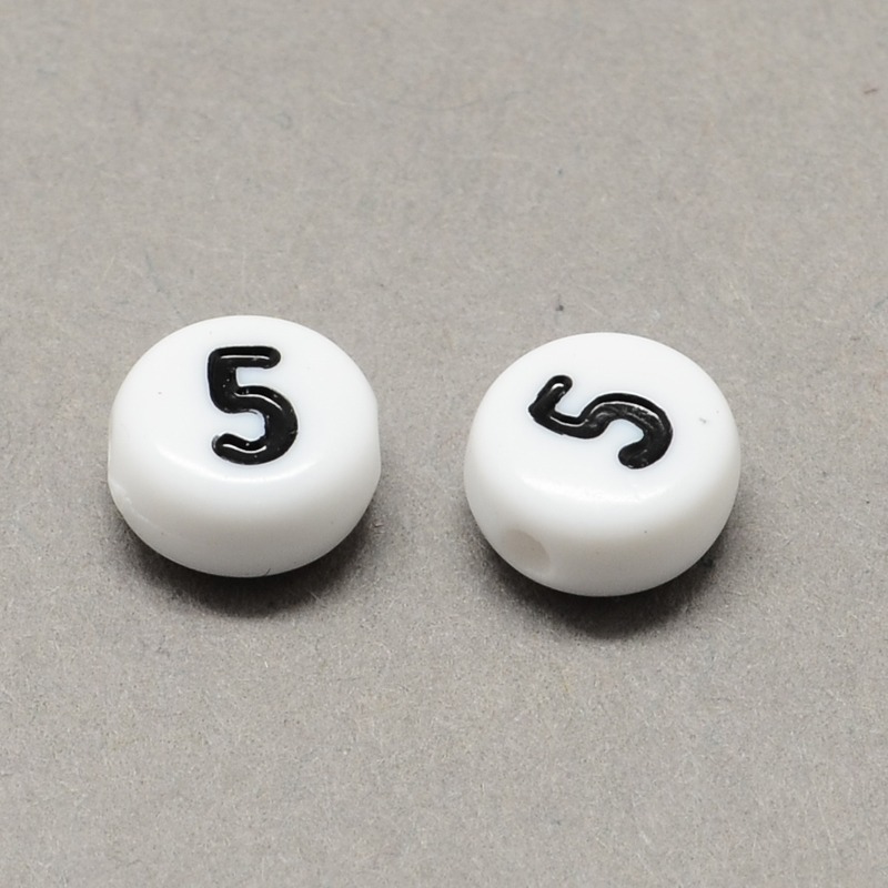 Akrylové korálky s čísly - bílé lentilky - 10 ks Čísla: 5