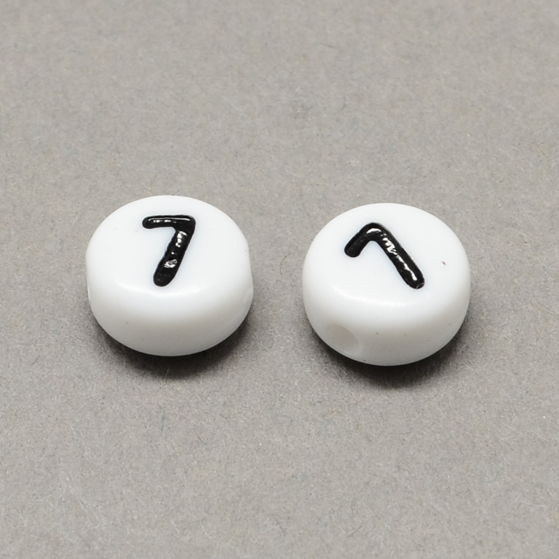 Akrylové korálky s čísly o délce 7 mm, šířce 7 mm, hloubce 4 mm a velikosti průvleku 1 mm. Akrylové lentilky prodáváme po deseti kusech jednoho čísla. Korálky jsou vyrobeny z plastu, profil číslice je jemně vyhloubený a černě nabarvený. Korálky jsou velmi lehké a stálobarevné. Uvedená cena je za deset kusů jednoho čísla. Jsou skvělým doplňkem k akrylovým korálkům s písmenky. Akrylové korálky ve tvaru malých bílých lentilek s vyraženými a černě vybarvenými číslicemi na obou stranách. Tyto korálky jsou perfektní pro výrobu personalizovaných šperků, jako jsou náramky, náhrdelníky, klíčenky a mnoho dalšího. Každý korálek má rozměry přibližně 7 mm v průměru a 4 mm na hloubku, což odpovídá kompaktním rozměrům vhodným pro jemné práce. Průvlek, skrze který lze provléknout šňůrku nebo tenký řetízek, má velikost přibližně 1 mm. Tyto korálky jsou prodáváme po deseti kusech od jednoho čísla, což vám umožňuje vybrat si specifické číslice potřebné pro vaše projekty. Cena je uvedena za deset kusů jednoho čísla. Akrylové materiály poskytují vysokou odolnost a dlouhou životnost, zatímco bílý podklad s černými čísly nabízí čistý a moderní vzhled, který je snadno kombinovatelný s různými barvami a materiály v rámci dalších šperkařských projektů.