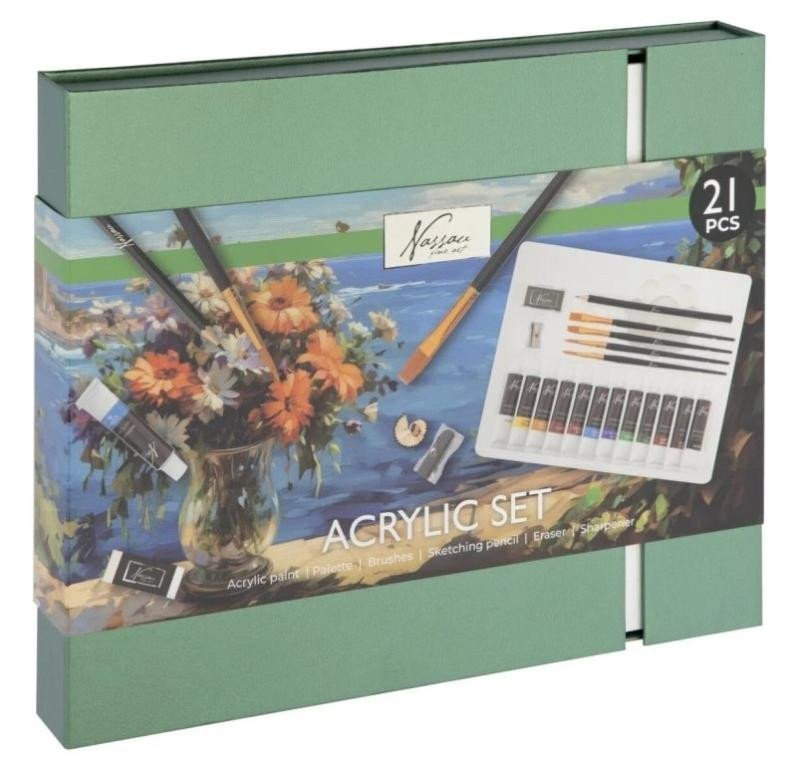 Krásné dárkové balení obsahuje vše potřebné pro malování akrylovou technikou. Skvělý dárek pro kreativce.