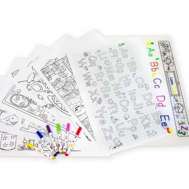 Tato podložka na stůl se skvělými funkcemi poskytuje ještě větší zábavu při učení. Tato sada se skládá z průhledné podložky na stůl (45 x 30 cm), celkem 6 papírových šablon DIN A3, které lze upnout pod podložku a 6 otíratelných fóliových per. Na 6 různých malířských a cvičebních listech můžete poznat svět čísel a písmen, řešit hádanky a prozkoumat kontinenty naší Země. S fóliovými pery lze psaní snadno znovu setřít, takže cvičení lze opakovat znovu a znovu a rychle dosáhnout učebních cílů.