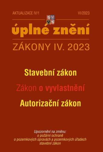 Úprava stavebního zákona zahrnuje zejména změnu systému stavební správy a s tím související úpravu kompetence jednotlivých stupňů stavební správy a související procesní změny povolování stavebních záměrů. ***** Titul obsahuje úplné znění zákonů po novele: ***** Stavební zákon, Zákon o vyvlastnění, Autorizační zákon ***** UPOZORNĚNÍ na změnu o požární ochraně, o pozemkových úpravách a pozemkových úřadech stavební zákon