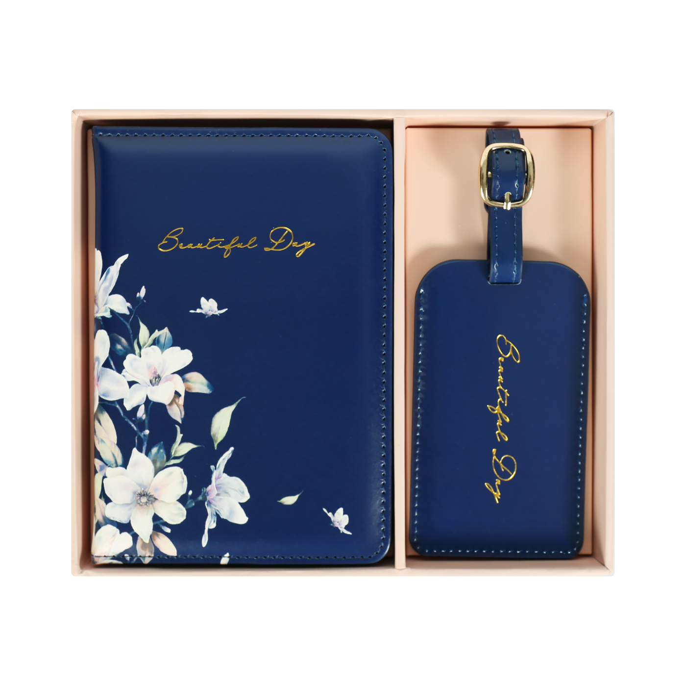 Cestovní sada s květinovým motivem obsahuje koženkové pouzdro na cestovní dokumenty a visačku na zavazadlo. Velikost balení: 19,5 × 16 × 2,5 cm