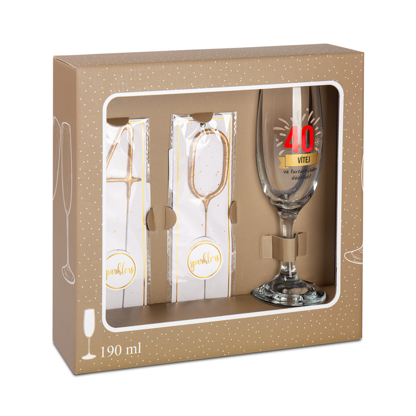 Další významné narozeniny se blíží a vy přemýšlíte, čím oslavence či oslavenkyni obdarovat? Narozeninová sada je ideálním darem pro vaše milované. Sada obsahuje vkusné prskavky s číslovkou a skleničku na šampaňské s humorným nápisem. Celá sada je v elegantním balení. Objem sklenice: 190 ml
