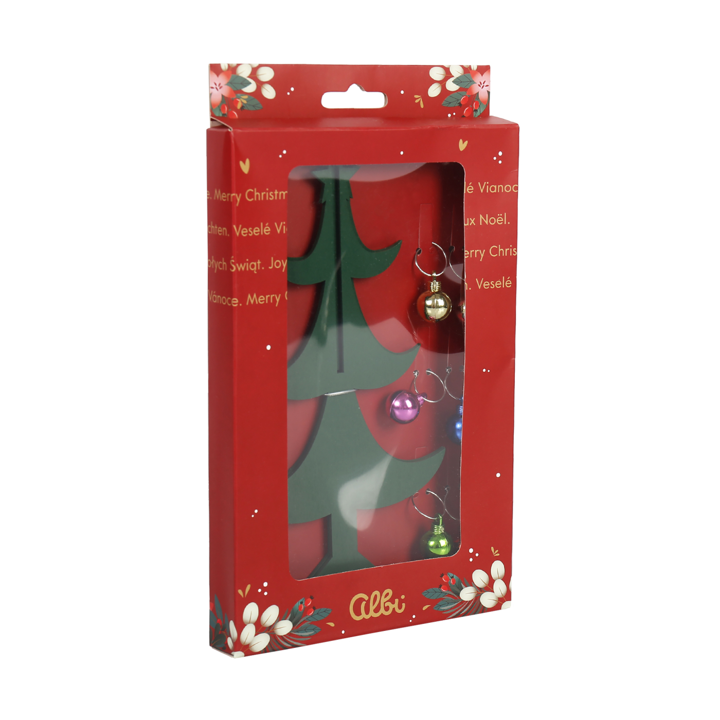 Rozlišovač v podobě vánoční ozdoby snadno přichytíte na nožku sklenky.