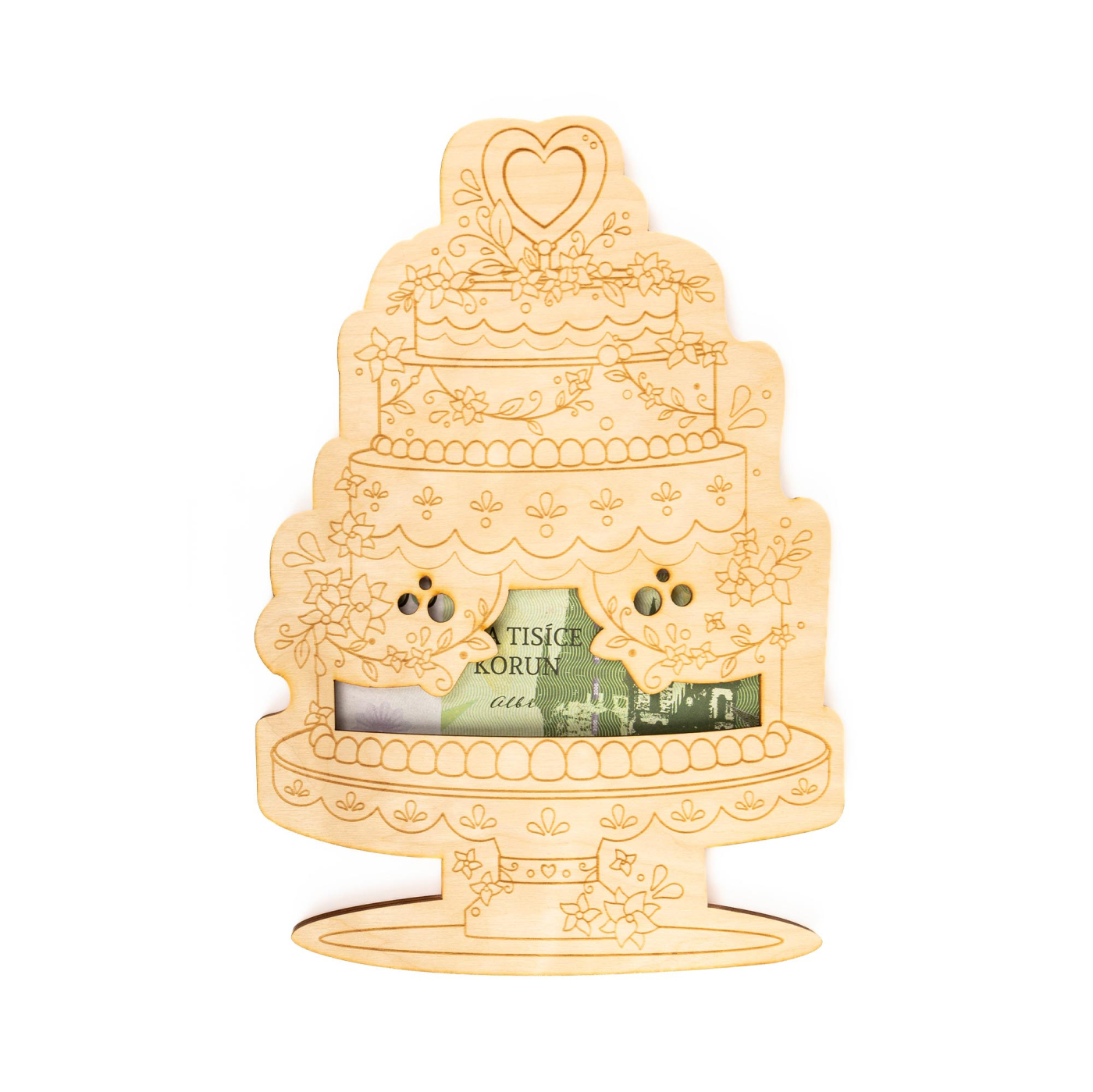 Darujte novomanželům peníze v dárkové dřevěné kapse se svatebním motivem. Rozměry: cca 30 cm × 20 cm