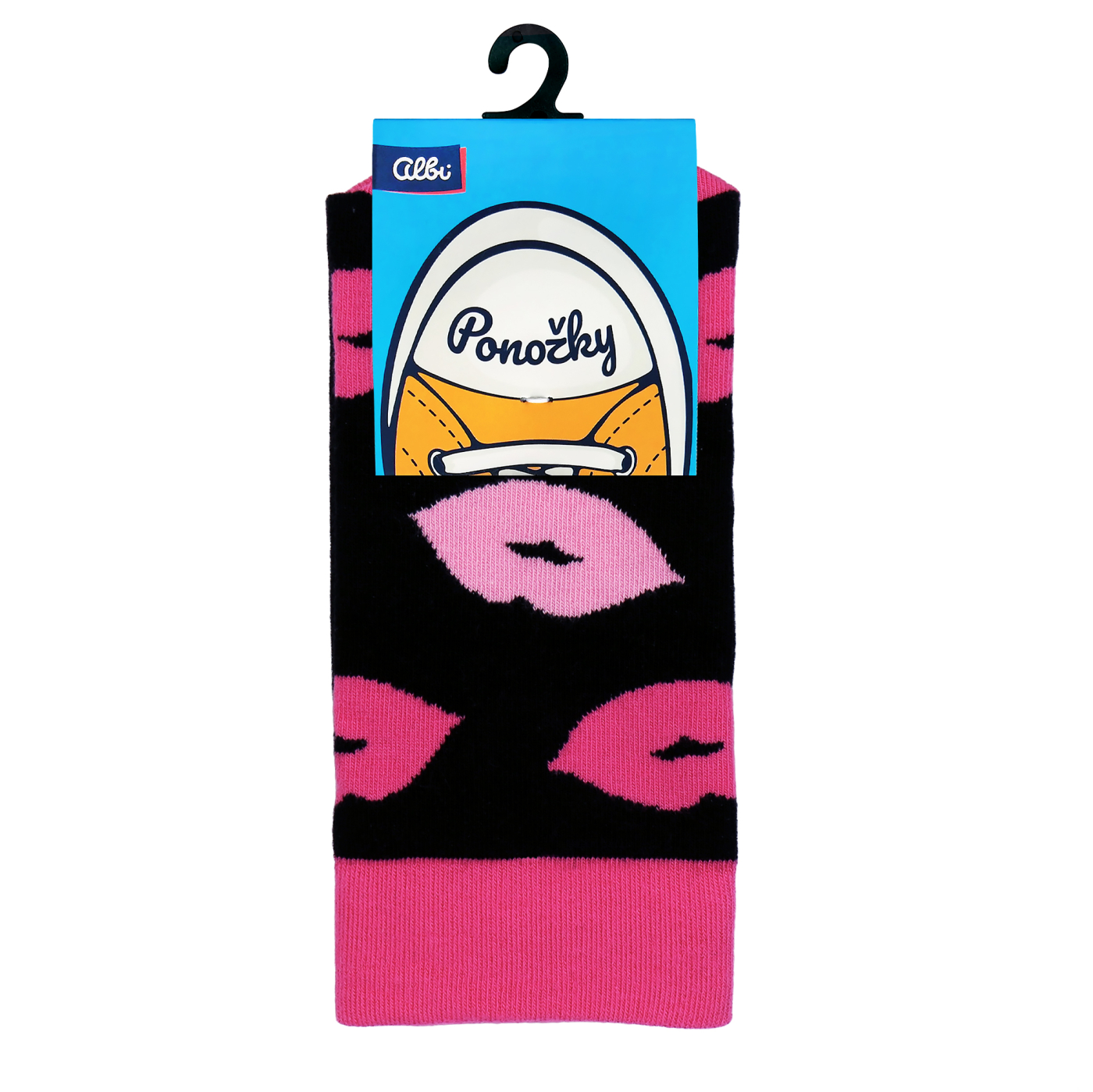 Podarujte na Valentýna svou drahou polovičku veselými ponožkami univerzální velikosti s motivem pusinek.