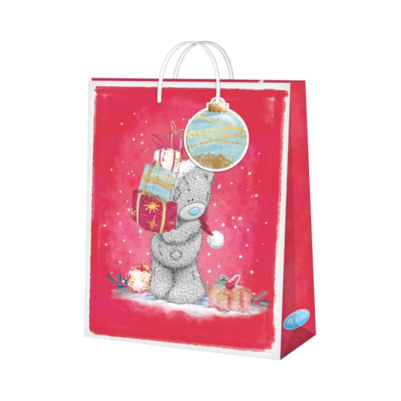Krásné vánoční dárkové tašky s klasickým medvídkem Me to You s roztomilým modrým nosem a záplatou. Rozměry: 26 cm × 32 cm × 12,5 cm