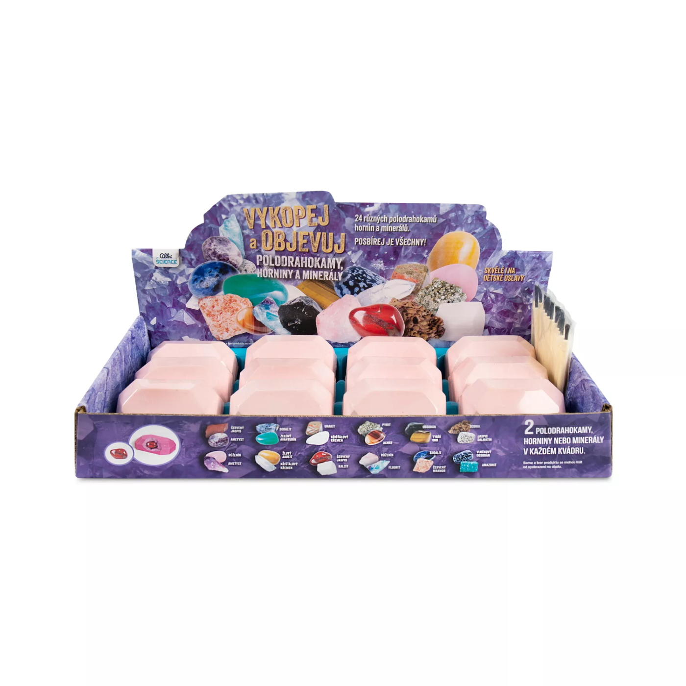 Staň se malým geologem a objevuj skryté poklady země s Vykopej a objevuj – Minerály (1 ks)!Uvnitř každé sádrové krychličky se ukrývají 2 pravé polodrahokamy nebo minerály, které čekají, až je odhalíš pomocí přiloženého nástroje. Každý kousek je originální – nikdy nevíš, jaký minerál najdeš! Vysekávání přináší dětem zábavu, poučení i radost z objevování, rozvíjí jejich trpělivost a podporuje zájem o přírodu a vědu. Ideální jako malý dárek, suvenýr nebo doplněk k větší sadě. Balení obsahuje: 1 sádrovou krychličku s 2 polodrahokamy či minerály 1 kutací nástroj