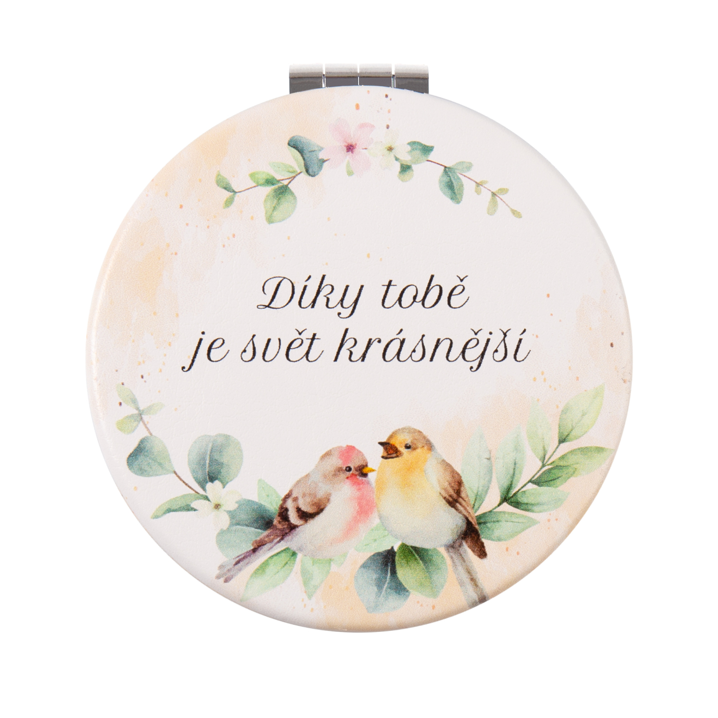 Malá kapesní zrcátka se vejdou i do té nejmenší kabelky. Jedno zrcátko je zvětšovací, druhé klasické. Průměr zrcátka: 7 cm Materiál: PU kůže, kov.