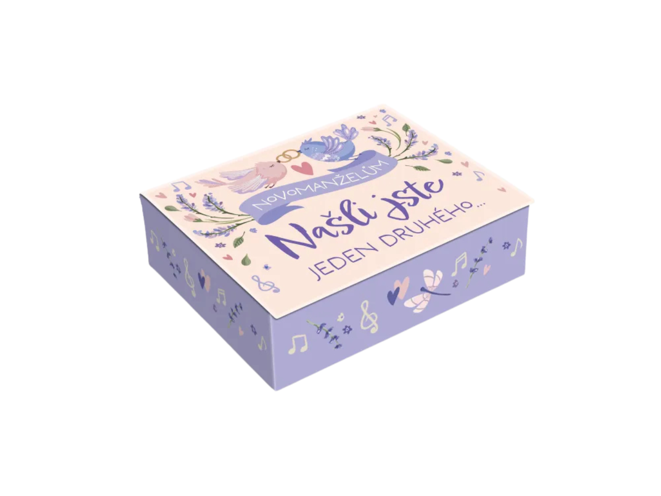 Dárková krabička - hrací na peníze svatební. Hrací krabičky jsou perfektním tipem, když chcete darovat peníze, dárkovou kartu nebo i drobný dárek. Uvnitř krabičky je navíc malá obálka, kam lze hotovost nebo dárkovou kartu vložit.