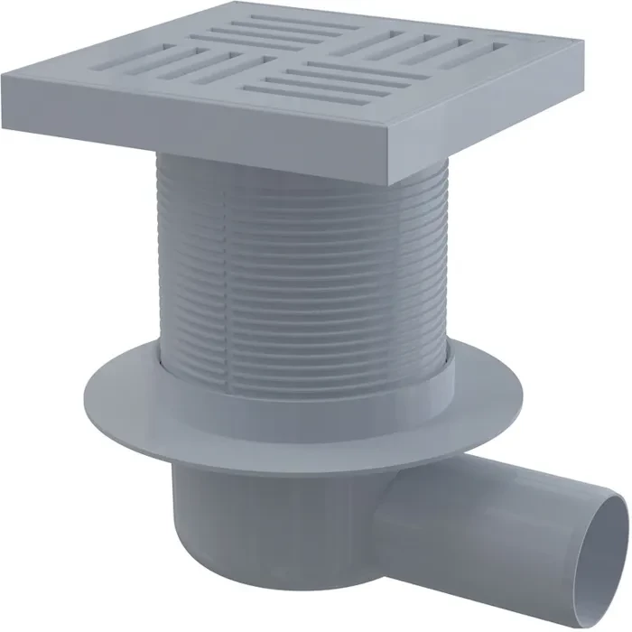 Alcadrain 1 - Alcadrain Podlahová vpust 150×150/50 mm boční, mřížka šedá, vodní zápachová uzávěra APV5211 APV5211