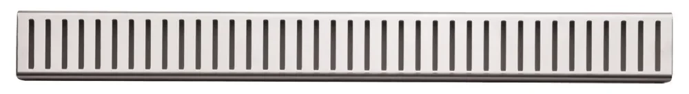 Alcaplast Rošt pro liniový podlahový žlab, nerez-mat PURE-1450M ; Vlastnosti: Povrch: nerez mat; Materiál: nerezová ocel AISI 304, DIN 1.4301, ČSN 17240; Použití: Pro podlahové žlaby ALCA: APZ1, APZ101, APZ1001, APZ1101, APZ4, APZ104, APZ1004, APZ1104, APZ12; Technické parametry: Třída zatížení K3 300 kg; Rozsah dodávky: Rošt; Demontážní háček; Plastová vymezovací opěrka