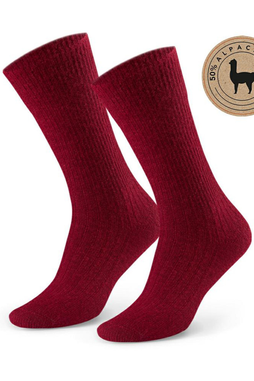 Ponožky s alpakovou vlnou, třikrát pevnější než ovčí vlna, neabsorbují pachyów, mají hypoalergenní a tepelně izolační vlastnosti. Jejich žebrovaná struktura zabraňuje zbytečnému tlaku na nohu..