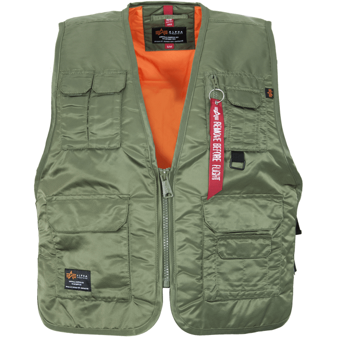 Utility vesta je stylový kousek pro ty, kteří se nechtějí tahat s taškou nebo batohem, ale také odmítají nacpané kapsy u kalhot. Vestu můžete v pohodě kombinovat s dalšími částmi oděvu a povýšit ji z praktického kousku oděvu na módní doplněk podtrhující váš look. několik praktických kapes a kapsiček jedno praktické poutko s kovovým kroužkem nastavitelná velikost pomocí pásků na bocích nášivka na pravé boční kapse ikonická stuha "remove before flight" hladký letecký nylon Materiál: 100 % nylon Výrobce: Alpha Industries, USA Kód výrobce: 118114