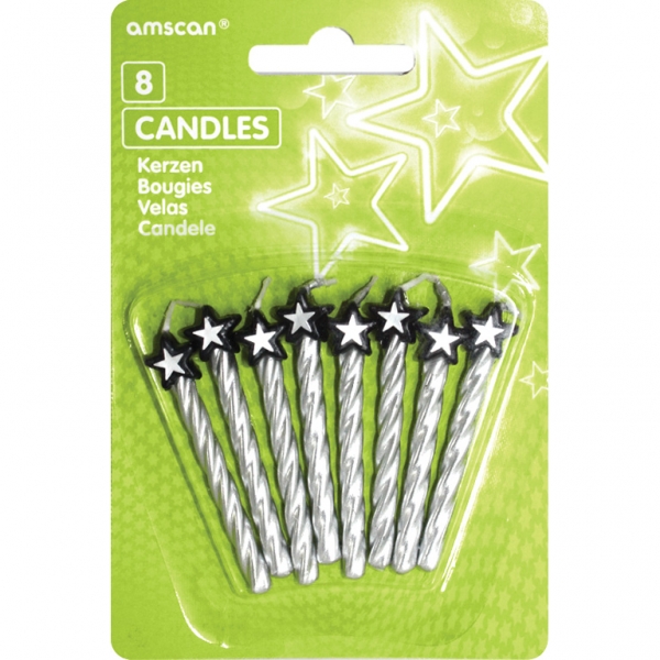 Dortové svíčky stříbrné s hvězdou na dort 8ks. Výška svíčky je 6,5cm. Narozeninová oslava bez dortu? To určitě ne! A na každý dort patří dortové svíčky, ať je může oslavenec sfouknout a něco si přát. Proto právě u nás najdete nejširší nabídku narozeninových svíček na trhu. Samozřejmě můžete místo svíčky na dort zvolit dortovou fontánu. Při přípravě slavnostního dortu jistě oceníte nabídku pomůcek na pečení. Pokud máte raději muffiny, můžete si vybrat z mnoha variant košíčků na muffiny. Při výzdobě slavnostního stolu doporučujeme využít stolové šerpy. Jsou opravdu elegantní a v mžiku vykouzlí slavnostní atmosféru. Samozřejmě nesmíte zapomenout na svíčky, ubrousky anebo na kapsy na příbory.