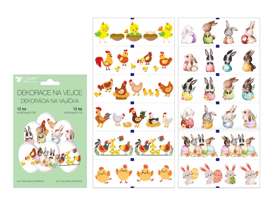 Ozdobte velikonoční vajíčka stylovými košilkami s dekorem mláďátek. Se smršťovací fólií/košilkou se pracuje velmi snadno a přitom výsledek je famózní: Na vychladlá uvařená vejce navlékněte plastovou dekorační fólii a poté položte na polévkovou lžíci. Ponořte na 3 minuty do horké vody, košilka se okamžitě obepne na těsno kolem vejce. Nechte uschnout. Cena je za 1 ks. Do balíčku bude vložen aktuálně dostupný, skladový kus.