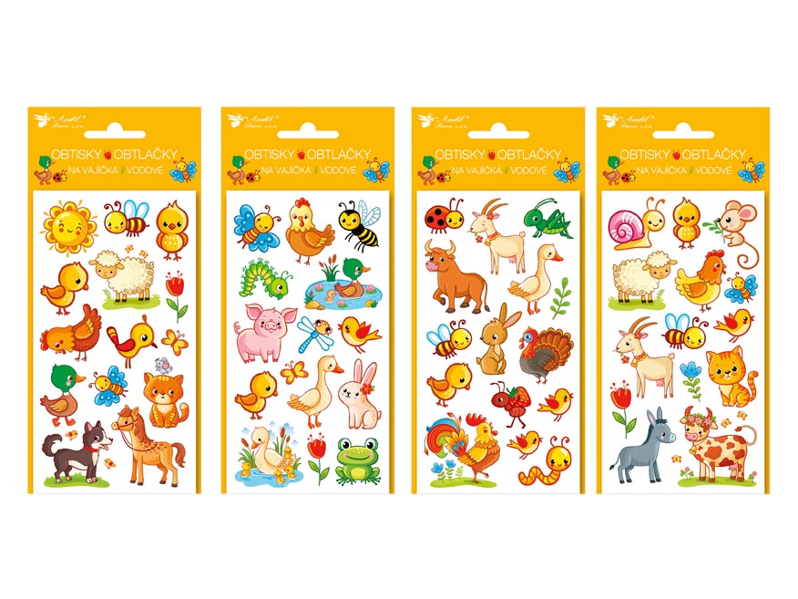 Klasické obtisky, které se aktivují vodou, ozdobí vajíčka kresbami domácích zvířat. Stačí vybrat motiv, vystřihnout, ponořit pod hladinu, uvolnit obrázek a přenést na vajíčko. Po uschnutí obtisk pevně přilne na povrch. Cena je za 1 ks. Do balíčku bude vložen aktuálně dostupný, skladový kus.