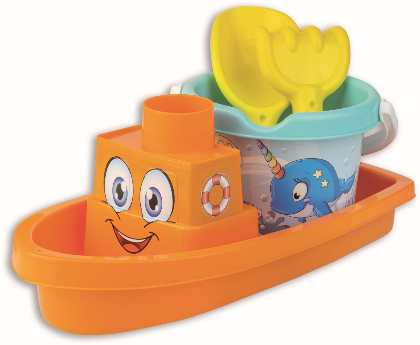 4dílná sada na písek s lodí, vyrobená z kvalitních plastů v Itálii. Obsahuje: Loďku, kyblík, lopatku a hrabičky. Loďka: délka 35 cm, šířka 16 cm. Kbelík: průměr 13 cm, výška 11 cm. Sada: 35 x 16 x 15 cm (d x š x v), váha 0,35 kg. Doporučený věk od 12 měsíců.