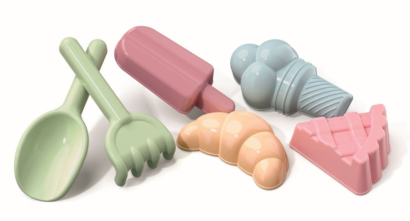 6dílná sada tvořítek na písek - cukrárna. Vyrobeno v Itálii z kvalitních plastů. Obsahuje: Hrabičky, lopatku a tvořítka: nanuk, zmrzlina, dortík a croissant. Baleno v sáčku o rozměrech 23 x 31 cm. Váha: 0,17 kg. Doporučený věk od 10 měsíců.