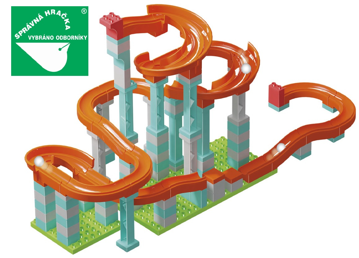 Novinka roku 2020 stavebnice Androni UNICO plus určená pro stavbu kuličkové dráhy. Sada obsahuje 128 dílů včetně 3 plastových kuliček a umožňuje sestavit 2 různé kuličkové dráhy o délce 280 cm. Rozměry 1. sestavené varianty jsou: délka 76,5 × šířka 30 x výška 39 cm. Rozměry 2. sestavené varianty jsou: délka 53,5 × šířka 54,4 x výška 24,5 cm. Součástí balení je návod na sestavení. Kostky jsou plnohodnotně kompatibilní se stavebnicí Lego Duplo. Vyrobené v Itálii z plastů špičkové kvality. Vhodné pro děti od 4 let. Při zakoupení všech tří kuličkových drah z této série vznikne dráha o délce 540 cm.