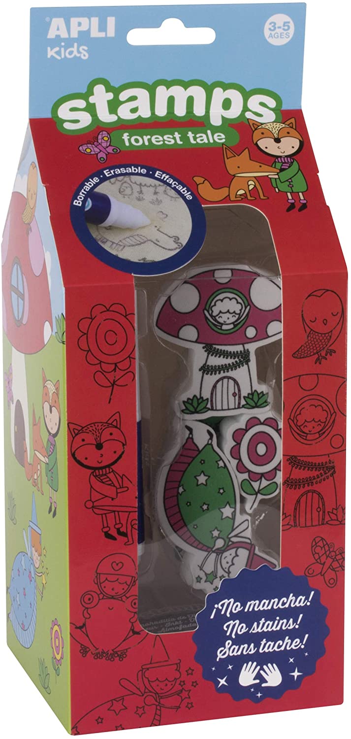 Razítkování děti baví, obzvláště v dlouhém čase karantény. Dárkové balení razítek od značky APLI, obsahuje vše, co je třeba pro zábavu s razítky a ještě něco navíc. V sadě naleznete 7 měkkých razítek, která jsou vhodná do dětské ručky, s oblíbenými motivy lesa a lesních zvířátek. Dále je v balení razítkovací poduška, napuštěná modrou, netoxickou barvou s atestem pro malé děti. Poslední součástí je speciální "vychytávka" - zmizík, kterým lze barva snadno odstranit nejenom z papíru, ale také z textilu či nábytku. Sada je vhodná pro děti od 18 měsíců. Balení obsahuje 8 ks v dárkové krabičce.