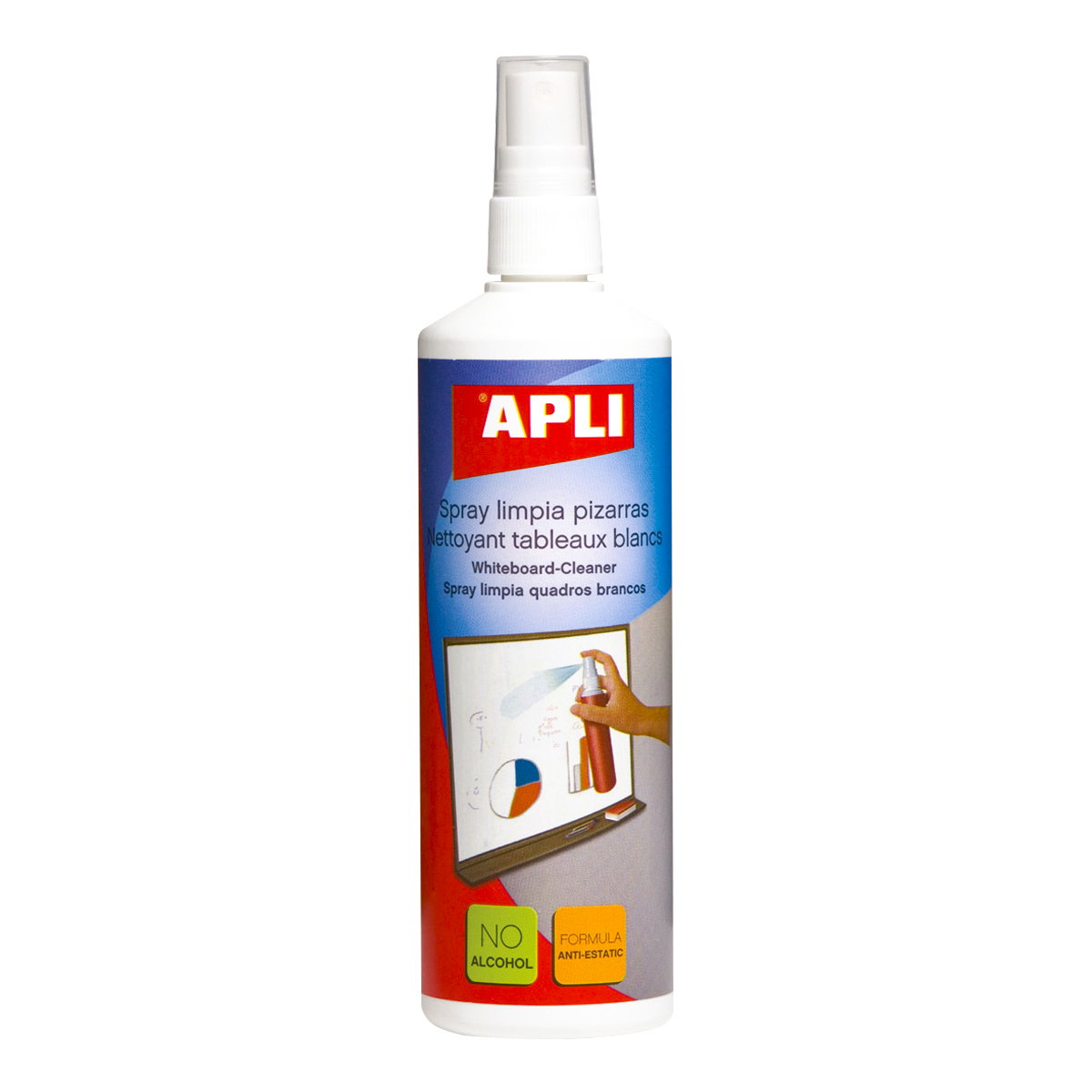Sprej pro čištění bílých popisovatelných tabulí ve školách, kancelářích, konferenčních místnostech atd. Pomocí tohoto spreje udržíte tabuli jako novou.antistatickébez alkoholurychlé čištění tabulí popisovatelných za sucha stíratelnými popisovačiobjem: 250 mlobsah balení: 1 ks