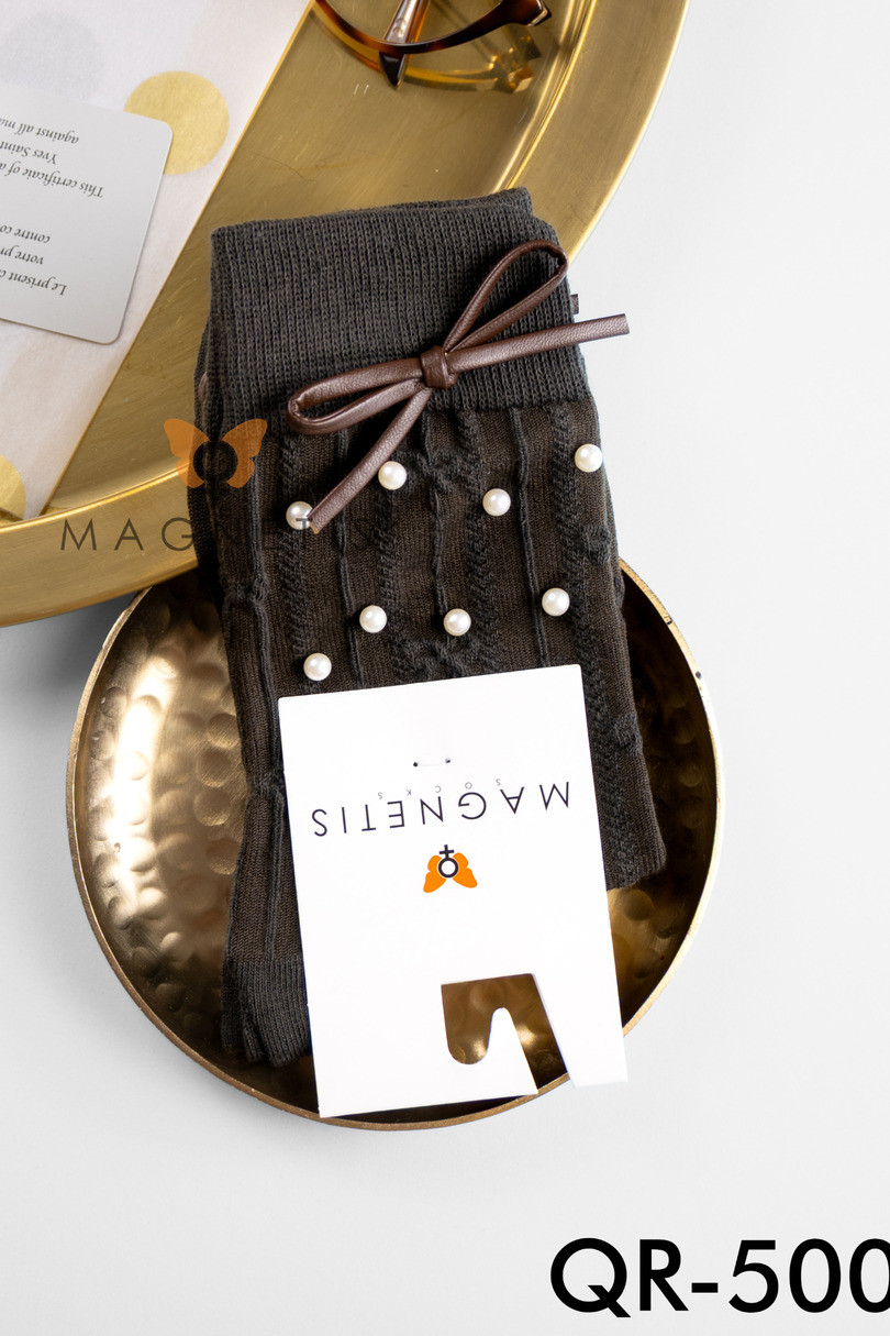 Skarpetki QR-5003 od Magnetis to idealne połączenie elegancji i codziennego komfortu. Wykonane z wysokogatunkowej bawełny z dodatkiem elastanu, są miękkie, elastyczne i przyjemne dla skóry. Ich wyjątkowy design przyciąga wzrok – ozdobione są subtelnymi perełkami oraz skórzaną kokardką, które dodają stylizacji kobiecego uroku i szyku.Delikatny dzianinowy wzór w stylu „warkocz” sprawia, że skarpetki prezentują się bardzo stylowo – zarówno w zestawie z botkami, jak i jako akcent domowego looku. Idealne na prezent lub jako dodatek do jesienno-zimowej garderoby.
