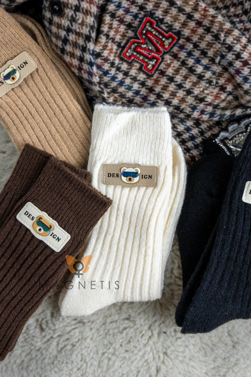 Skarpetki YN-5032 od Magnetis to idealne połączenie komfortu, jakości i uroczego stylu. Wykonane z miękkiej mieszanki bawełny, wełny i wiskozy, zapewniają przyjemne ciepło i wygodę przez cały dzień. Charakterystyczną cechą tego modelu jest stylowa naszywka z misiem w okularach i napisem DESIGN, która dodaje im młodzieżowego i modowego charakteru.Grubszy, prążkowany materiał doskonale sprawdza się w chłodniejsze dni – idealny do botków, kozaków, a także do noszenia po domu. Wybierz swój ulubiony kolor spośród klasycznych odcieni: ecru, brąz, karmel, czerń.