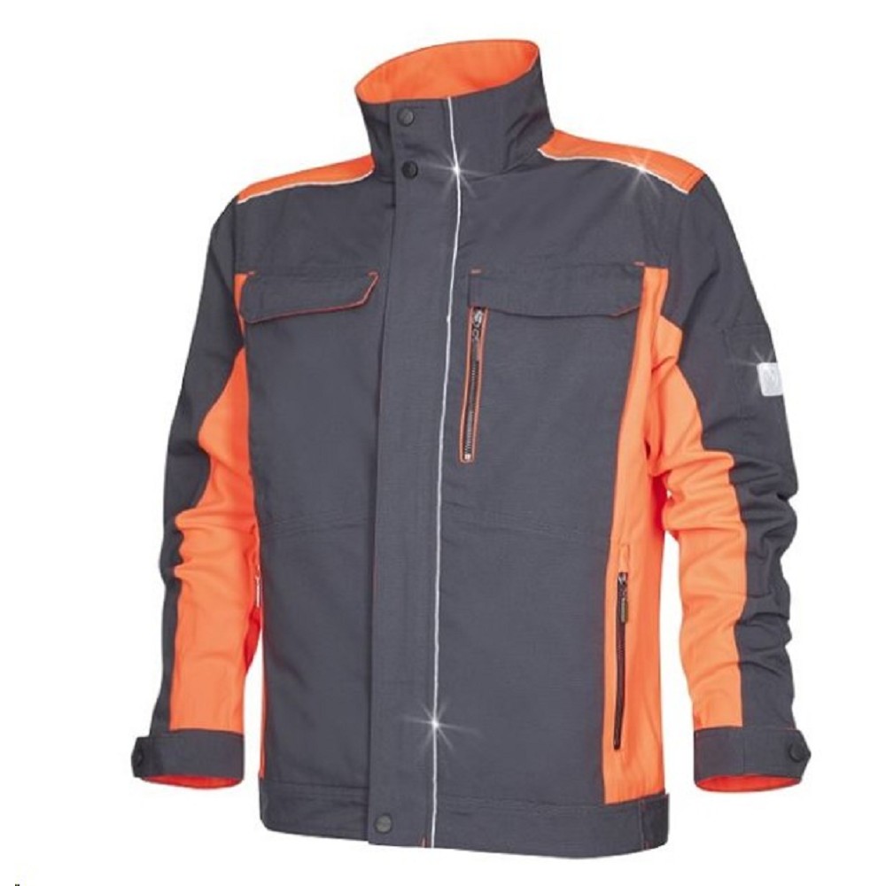 Montérková bunda NEON šedo-červená blůza propracovaného střihu s anatomickým tvarováním hlavní zip krytý légou prostorné spodní zipové kapsy vnitřní průhmatové kapsy dvě náprsní kapsy, kapsa na zip, kapsa na rukávu přizpůsobení volnosti pasu a rukávů utahovacími patkami anatomicky tvarované rukávy kovové zipy použití: stavebnictví, průmysl, výroba, hobby a dílna materiál: 65% polyester, 35% bavlna, kanvas, 270 g/m2 barva: šedo-červená velikosti: S-3XL