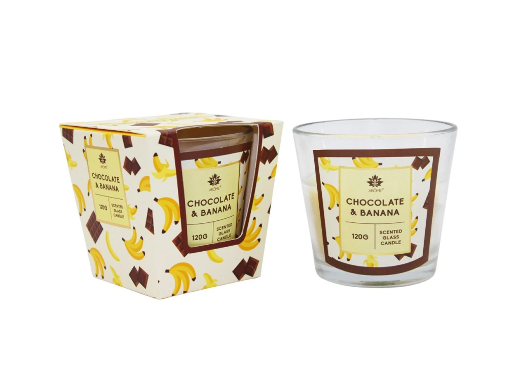 Vonná svíčka v krabičce od ARÔME okouzlí všechny, kdo milují neodolatelnou kombinaci zralého banánu a jemné čokolády. Sladká, krémová vůně vás přenese do světa pohody a klidu – ideální pro relaxaci po náročném dni. Svíčka hoří až 34 hodin a díky elegantní krabičce v ladícím designu je také nádherným dárkem pro všechny milovníky sladkých vůní.