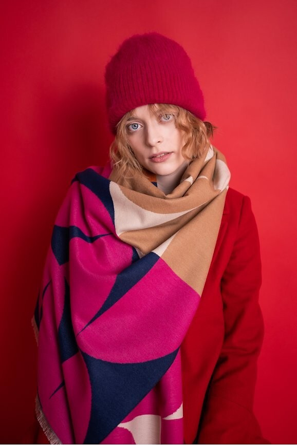 Dámská šála v intenzivních barvách - zdobené geometrickými vzory - látka příjemná na dotek - ideální pro každodenní nošení a městský styling - délka 200 cm Složení: 80 % polyester, 20 % bavlna