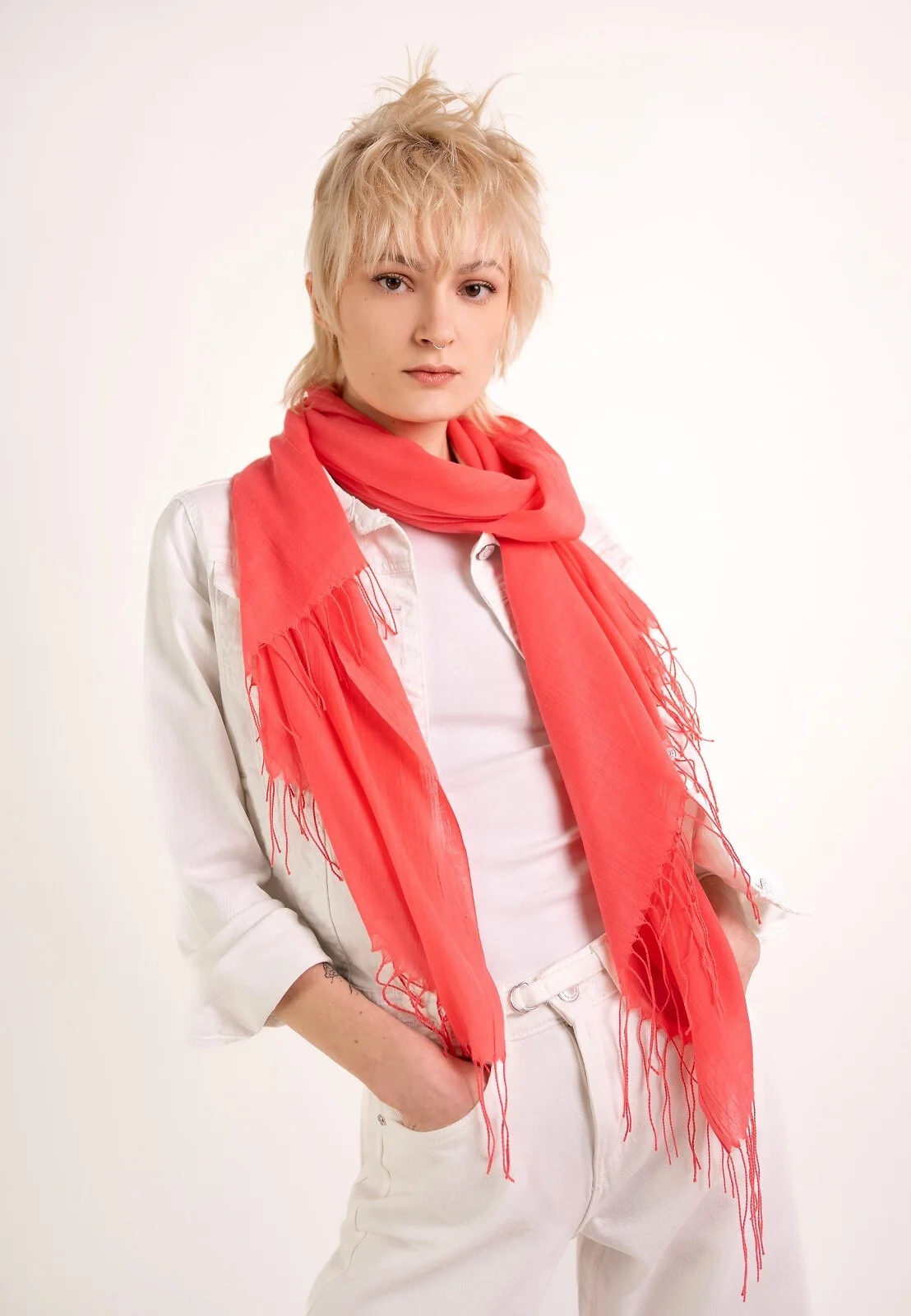 Dámský tenký šátek - rovný střih - zakončený třásněmi - rozměry: 180 x 70 cm - vyrobeno z jemné tkaniny příjemné na dotek - nadčasový a univerzální, ideální jako doplněk k jarně-letnímu oblečení - vytvořeno pro lidi, kteří oceňují klasické a nadčasové doplňky Složení: 60 % viskóza, 40 % polyester