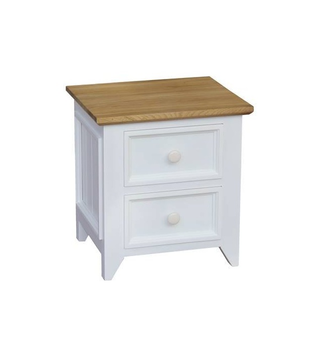 Noční stolek FLEUR-SN2P (Bílá) je typem menšího nočního stolečku z kolekce FLEUR, která je stylizována do francouzského stylu, který neomrzí ani po mnoha letech. Výjimečnost celé kolekce je dána použitými materiály, kde základní kostra stolku je vyrobena z bukového masivu a horní deska z dubového dřeva. Barevnosti nábytku je docíleno tak, že bukové dřevo je natřeno akrylovou barvou a dubové horní desky olejem, aby více vynikla přirozená krása dřeva. Noční stolek si najde své místo nejen v moderních, ale i klasičtěji zařízených interiérech, proto je pořizován nejen do ložnic našich bytů a domovů, ale také do apartmánů nebo na chaty a chalupy. Nábytkem z kolekce FLEUR si můžete zařídit celý pokoj, byt či rodinný dům, pokud jste milovníky přírodních materiálů a tohoto stylu :)