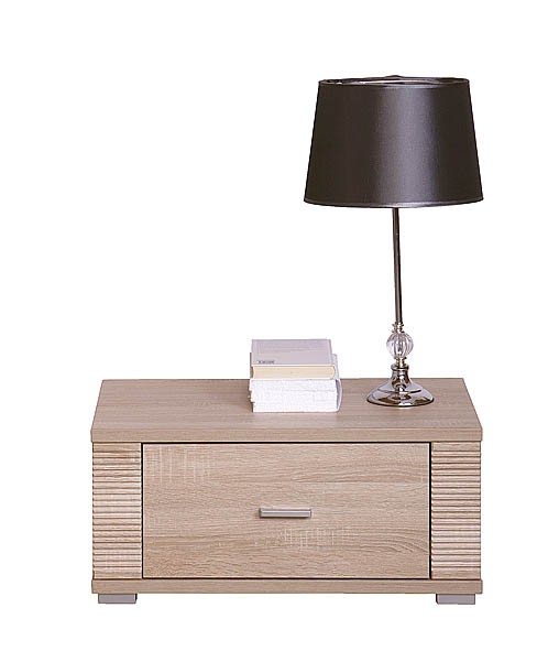 Noční stolek GRESS-1S (Dub sonoma) je jeden z dílů moderního nábytku ve velice oblíbeném dekoru dub sonoma. Kolekce nábytku je zajímavá především ozdobným prvkem, kterým jsou vroubkované lišty po straně každého dílu a zesílené horní desky. Kromě moderního vzhledu působí nábytek i příjemným a útulným dojmem. Stolek se zásuvkou na kuličkových pojezdech. Díky široké kolekci GRESS si můžeme snadno zařídit celý obývací pokoj, ložnici, dětské pokoje, ale také pracovnu a kancelář. Své místo si určitě najde i v různých ubytovacích zařízení. Další výhodou je i cenová dostupnost. Je vyroben z LDTD desek různé tloušťky.