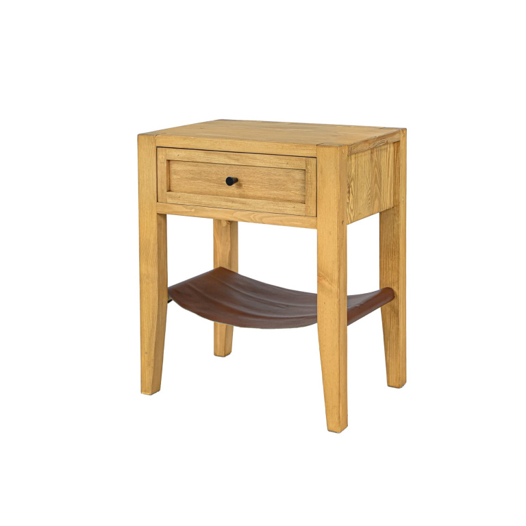Masivní noční stolek HAVANA PEL12 - borovice - elegance a funkčnost v přírodním stylu, která vnese do svého interiéru přírodní krásu a nadčasový styl. Tento atraktivní kus nábytku je vyroben z kvalitního borovicového masivu, který vyniká výraznou kresbou dřeva a jeho strukturou. Povrch je ošetřen voskem, jenž zvýrazňuje přirozený odstín borovice a zároveň chrání materiál proti každodennímu opotřebení. Díky své pevné konstrukci je stolek velmi stabilní a odolný, přesto však působí lehce a vzdušně. Noční stolek má horní odkládací desku, uzavřnou zásuvku, pro ukládání drobných předmětů a koženou polici, která je zajimavým detailem celého nočmího stolku. Noční stolek se bude krásně vyjímat ve Vašich ložnicích, pracovnách, ale může tvořit také součást dětských či hostinských pokojů.