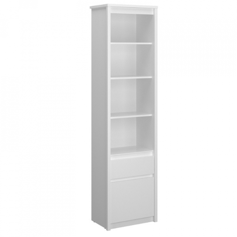 Otevřený regál ERDEN-1D1S (Bílá) je součástí kolekce nábytku, který je svým čistým a nadčasovým designem velice univerzální. Bezúchytkové provedení společně se zesílenými ozdobnými hrany to jen dokazují. Svou praktičností a minimalismem jím lze velice snadno doplnit jak stávající interiér tak zařídit nejen obývací pokoje a jídelny ale i dětské či studentské pokoje. Regál s otevřenými policemi, zásuvkou na kuličkových pojezdech a dvířkovou částí nabízí mnoho úložného prostoru, který oceníme i v pracovně a kanceláři. Materiálově je nábytek vyroben z LDTD desek. Regál z kolekce nábytku ERDEN.