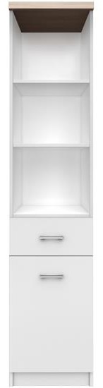 Materiál a provedení otevřeného regálu TOP MIX-1D1S (Dub sonoma/bílá):