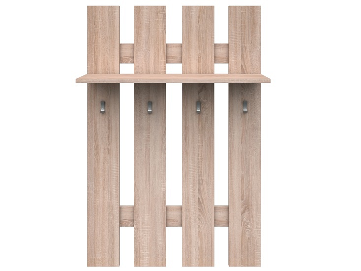 Věšák TOP MIX-80 (Dub sonoma) je klasickým typem věšáku, který je v horní části osazen policí a 4 háčky pro odložení svrchního oblečení. Své místo si věšák najde nejen v předsíních a vstupních halách, ale také v pracovnách a kancelářích, na chatě nebo jiných rekreačních a ubytovacích zařízeních. Nábytek je vyroben z LDTD desek tl. 16 mm. Jednou z výhod kolekce TOP MIX je velmi široký výběr a možnost kombinace dvou barevných provedení dub sonoma nebo dub sonoma/bílá. Další výraznou výhodou je univerzální využití a příznivá cenová dostupnost.