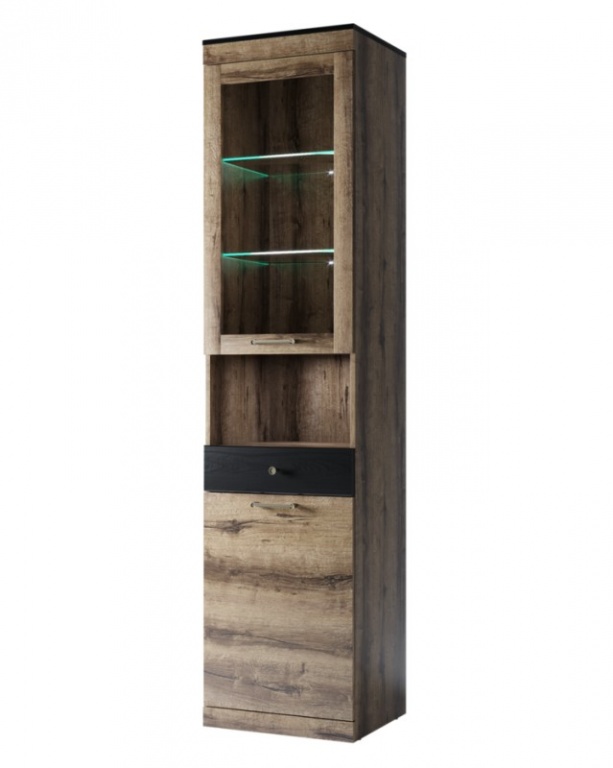 Materiál a provedení vitríny JAGGER-1D1W1S (Dub monastery/černá):