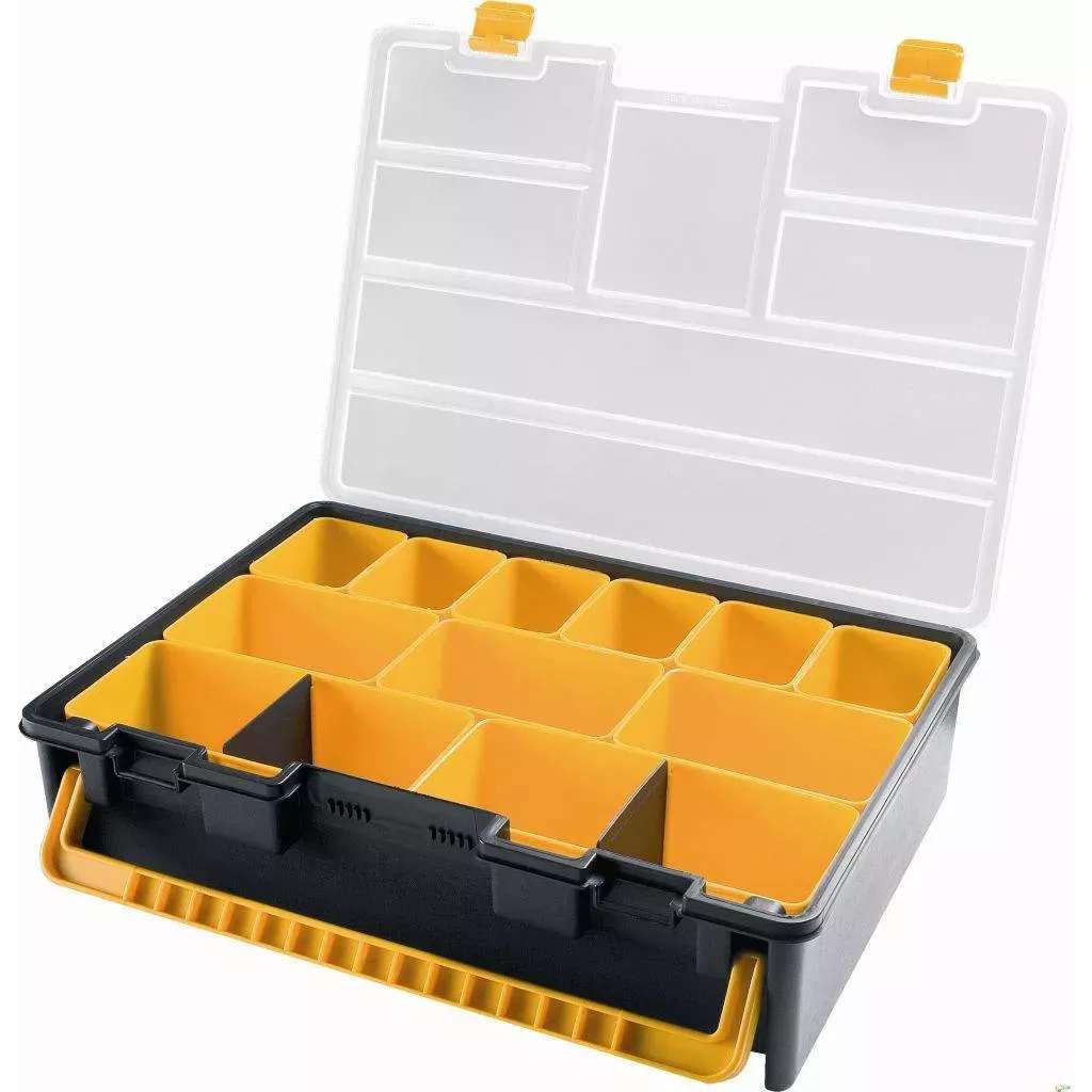 | Heureka popis SK | Veľký plastový organizér Artplast, vybavený vnútornými boxmi vhodný na uskladnenie a prenášanie spojovacieho materiálu. Technické údaje: rozmery 443x317x107 mm. prevedenie s vnútornými boxmi obsahuje: 6 boxov 193 (90x69x94 mm), 3 boxy 194 (139x89x94... |