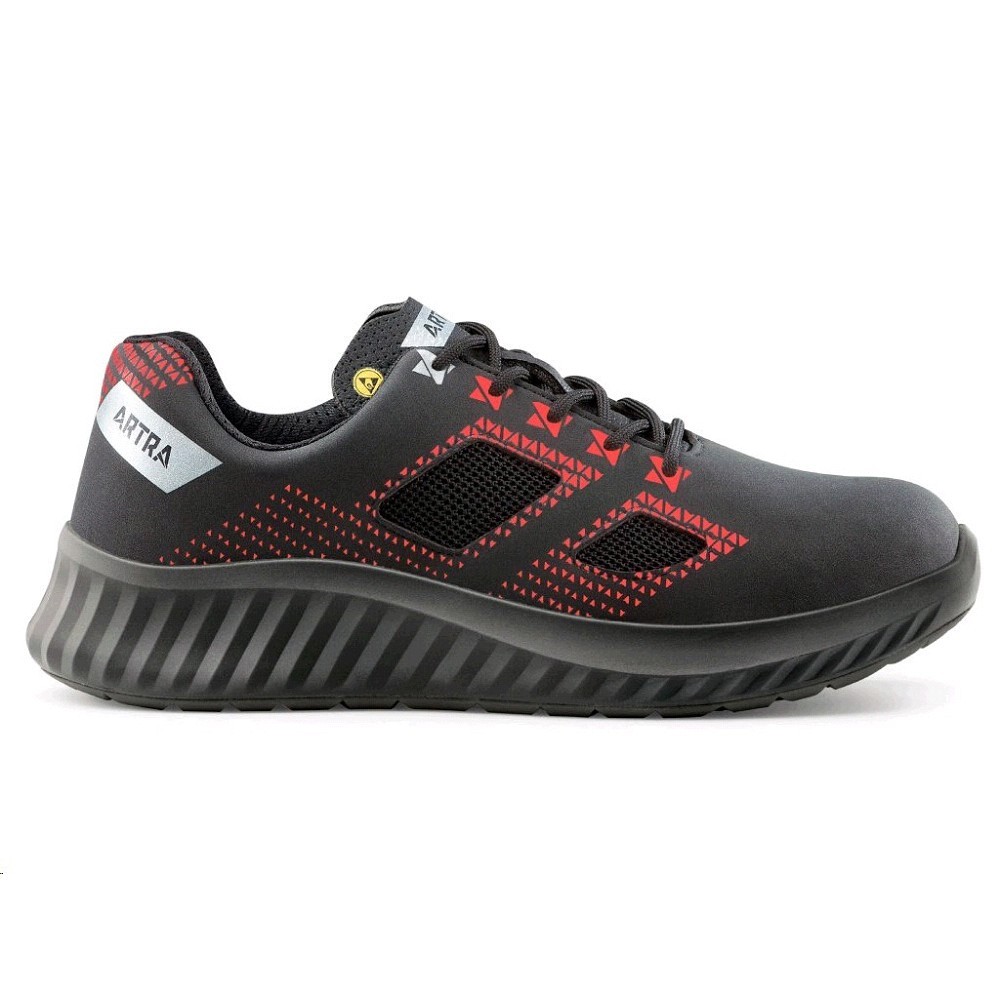 Obuv ARCASIO černo-čevené 732 613060 01 FO ESD Svršek: - hydrofobní mikrovlákno NUBUCK PRO 2,2 mm zvyšuje odolnost a prodyšnost v kombinaci s textilií AIRKNIT PRO Podšívka: - CLIMAX s 3D konstrukcí pro neomezenou cirkulaci vzduchu a optimální klima Stélka: - anatomická ENERGIZER, paměťová polyuretanová pěna pro extra vzduchové odpružení a prodyšnost Podešev: RAPTOR PU.2D s responzivním odpružením pro vysoký návrat energie antistatická absorpce energie v patě podešev odolná olejům a pohonným hmotám kompletně bez obsahu kovů protiskluzová podešev SRC splňuje požadavky ESD dle EN IEC 61340-4-3:2018 O1 FO ESD SRC EN ISO 20347 Velikosti 35-48 Barva černo-červená