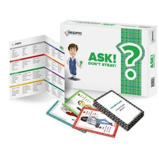 Questioning is the key to knowledge and people’s hearts, however sometimes it’s so hard to find a right and proper question, particularly for English learners.Want to ask questions in English out of a hat?No more doubts and hesitation how to start?The game ASK don’t STRAY is a great play with asking and answering in a race for a prize!Your aim: picking up a collection of your characters.The game for friends, family or studentsItems: 60 cards with characters and activities,20 cards with the categories in which we ask questions,10 large cards, instructions